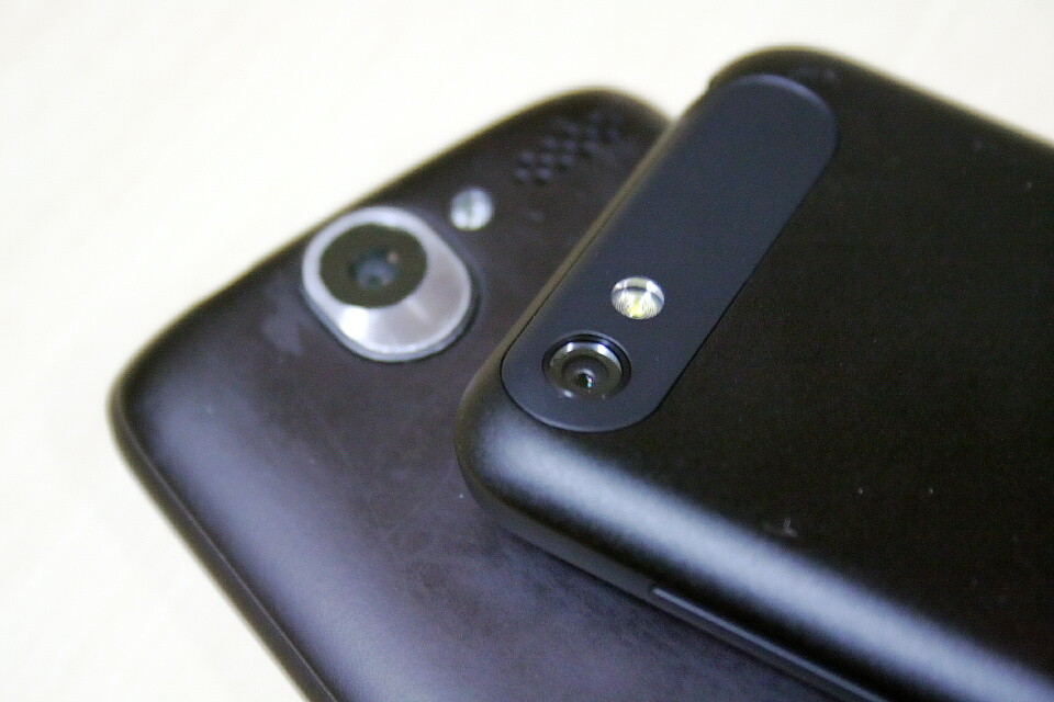背面のカメラ部分。手前がHTC One Vで奥がX06HT