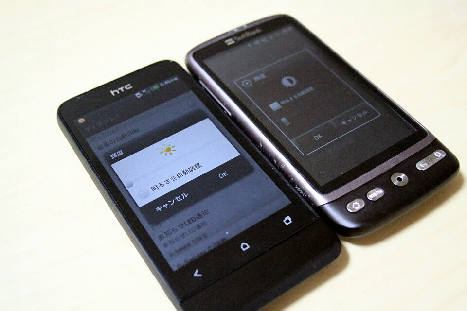 ディスプレイの比較。左がHTC One V、右がX06HT