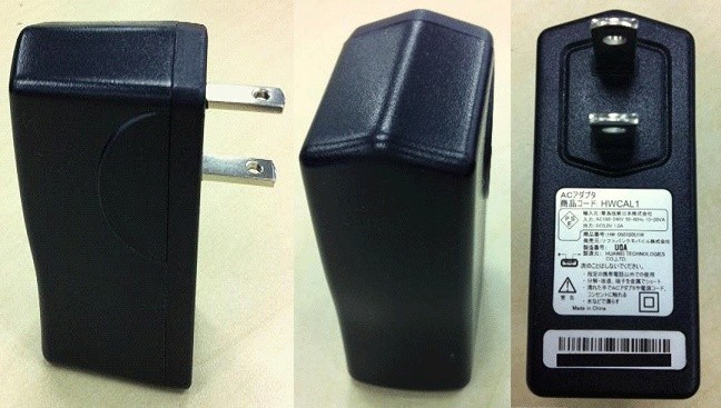 今回の無償交換の施策は、ACアダプター(商品コード:HWCAL1)の銘板ラベルに登録検査機関名称が表示されていないというもの。なお、無償送付の対象となるACアダプター(商品コード:HWCAL1)は下記の写真の通りの形状のものです。