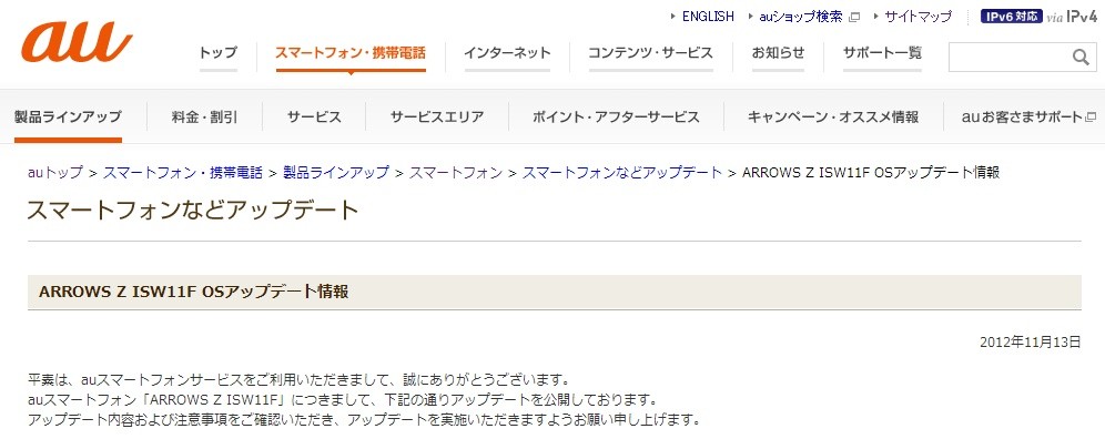 ・ARROWS Z ISW11F OSアップデート情報 | au