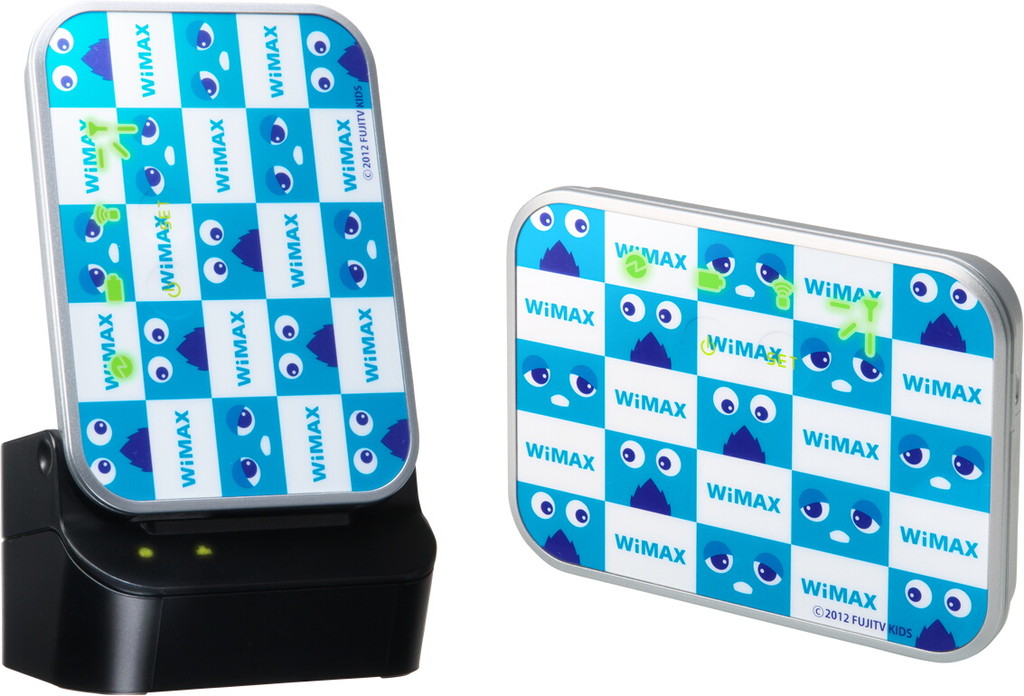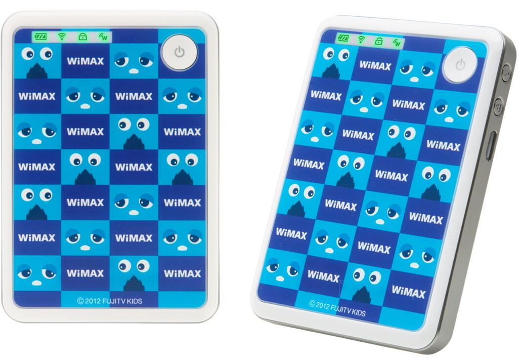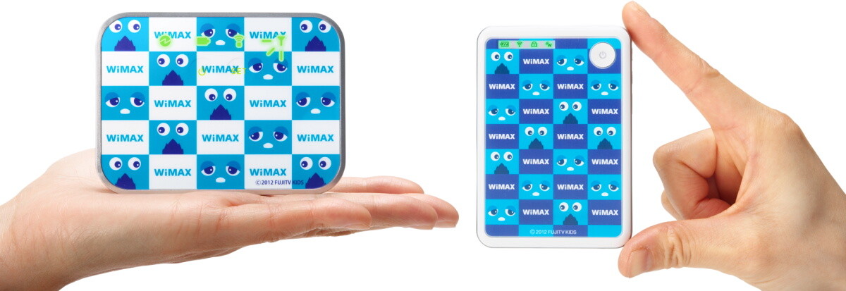 今回も同じくAtermWM3600Rをベースにしたモデルがラインナップされているが、本体に描かれているデザインが異なる。今回の2機種はどちらもブルーとホワイトを基調とした市松模様に、ブルーガチャムクと「WiMAX」の文字がデザインされている。