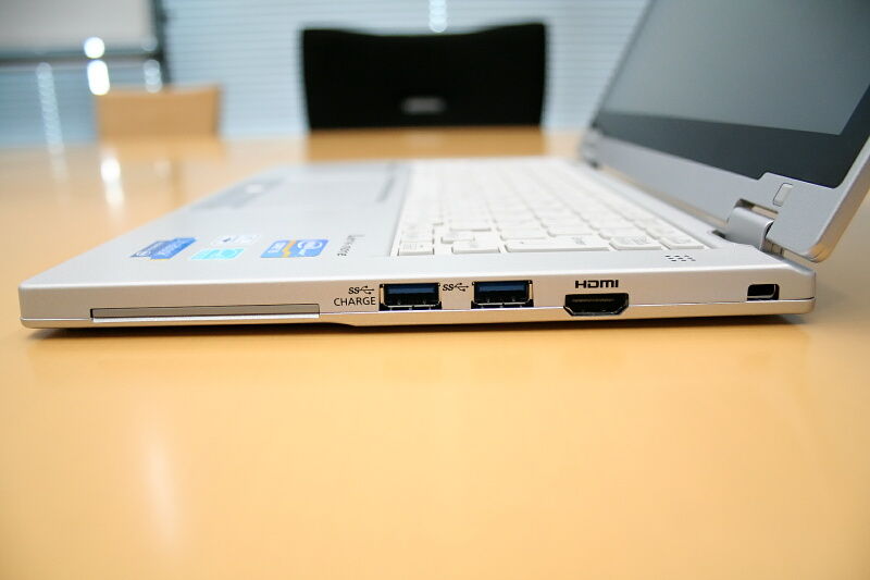 正面向かって右側面にHDMI端子、USB3.0端子を2つ装備