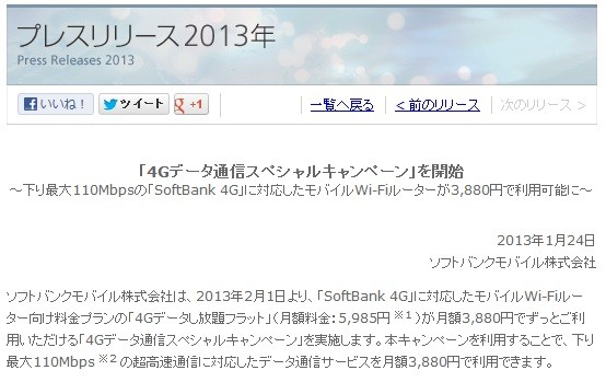 ・4Gデータ通信スペシャルキャンペーンプレスリリース|ソフトバンク