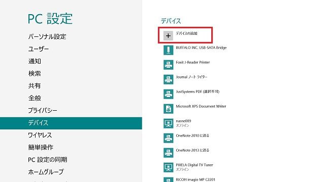 | 画面2 [デバイス]をタップし、[デバイスの追加]をタップする。Bluetoothキーボードの電源を入れ、[connect]などのボタンがあれば押しておく。 |