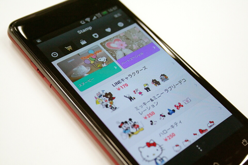 ディズニーやハローキティ、スヌーピーなどのキャラクター、塩川いづみ、ステレオテニス、せきやゆりえ、Chocomoo、師岡とおるなどのイラストレーターによるスタンプをスタンプショップ公開の第一弾として用意。全31セット、総計752種類のスタンプの販売が行われている。