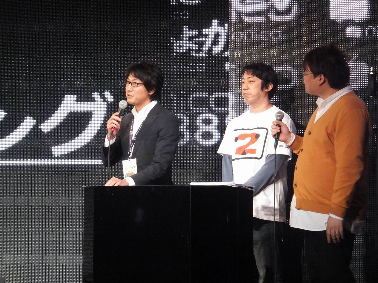 | プレゼンテーターはニワンゴ社長杉本誠司氏以下中野運営長、伴龍一郎氏 |
