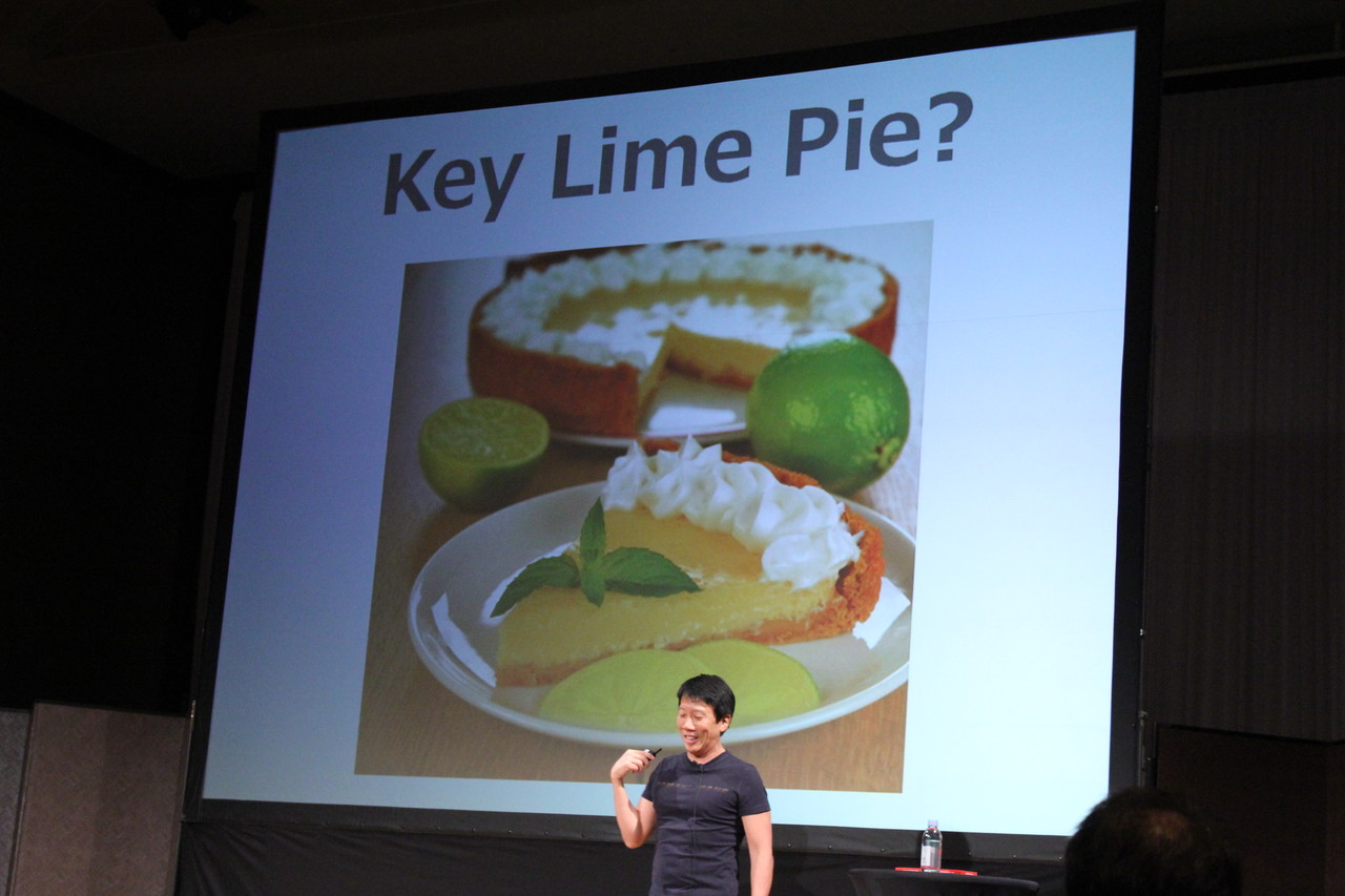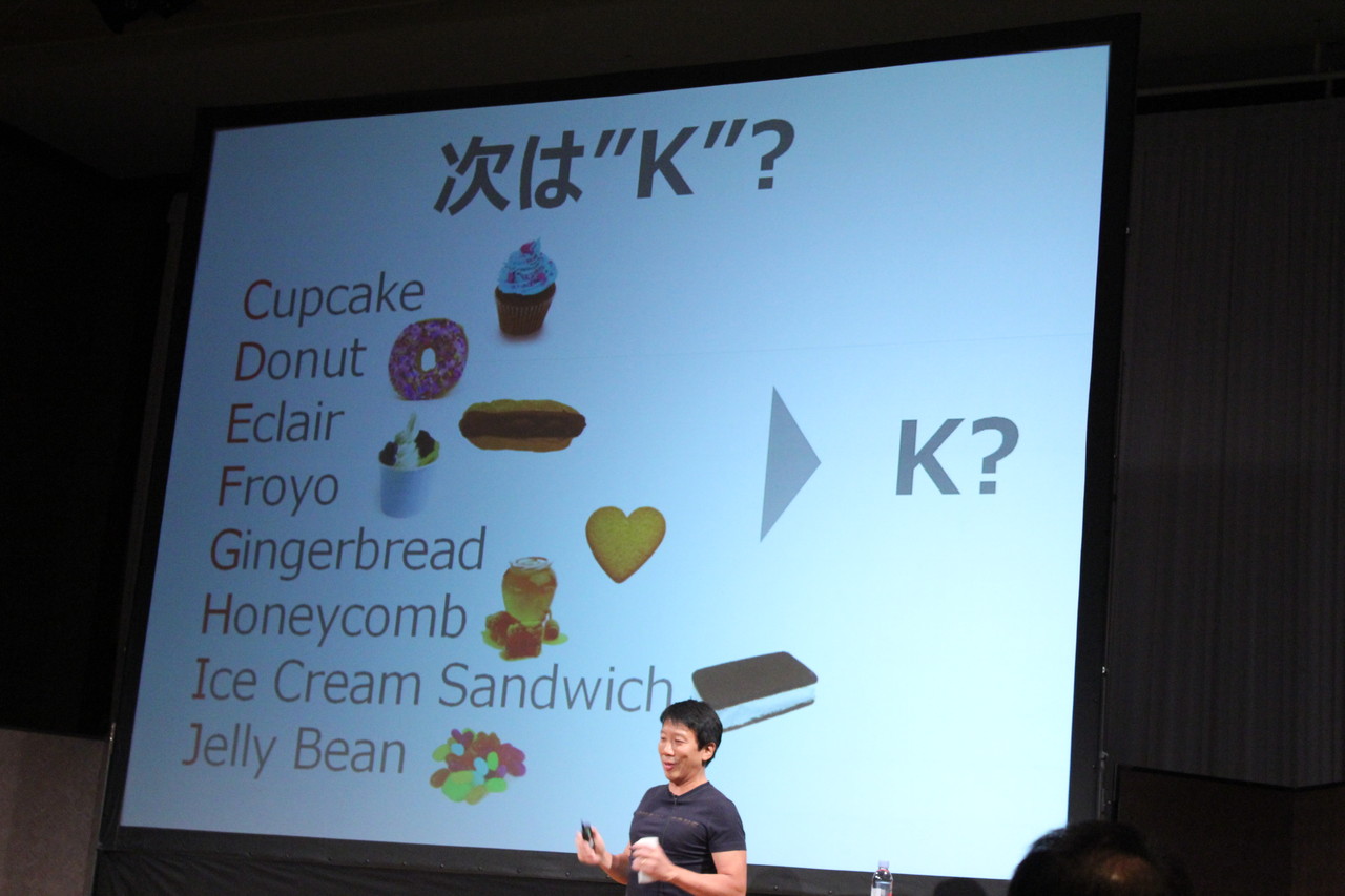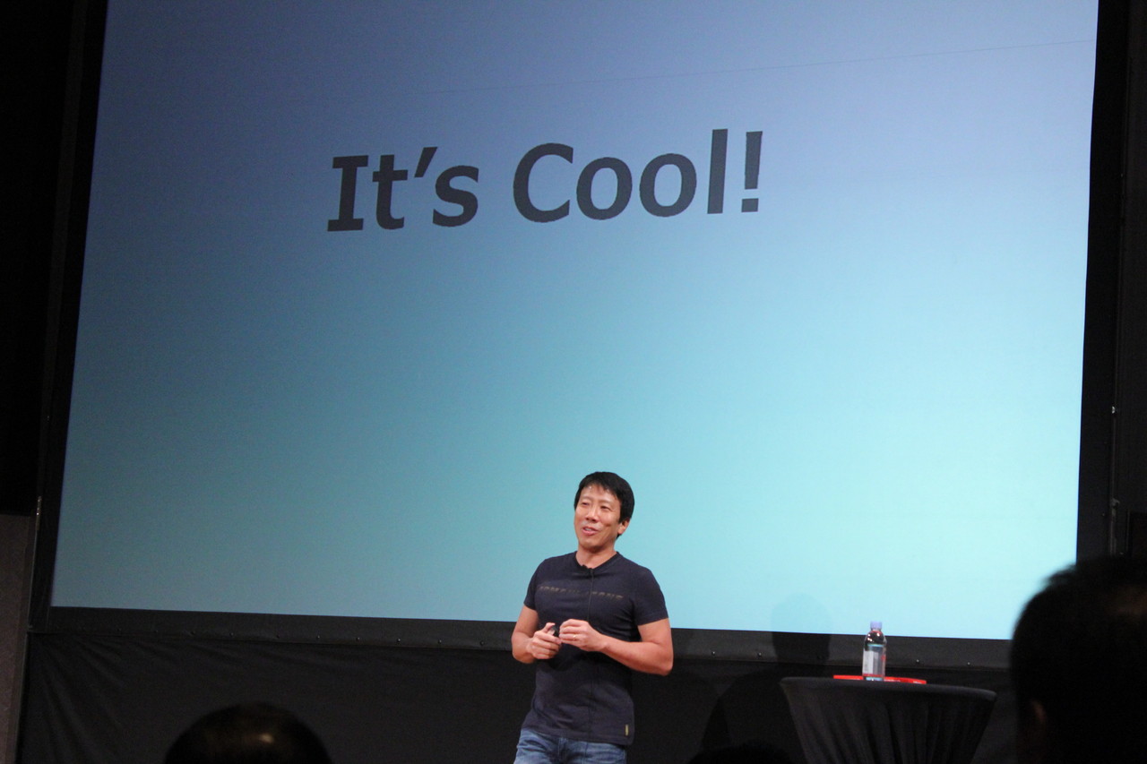 発表会ではいつもスーツなガン氏ですが、Google風ということでTシャツとジーンズでのプレゼンテーションでした。