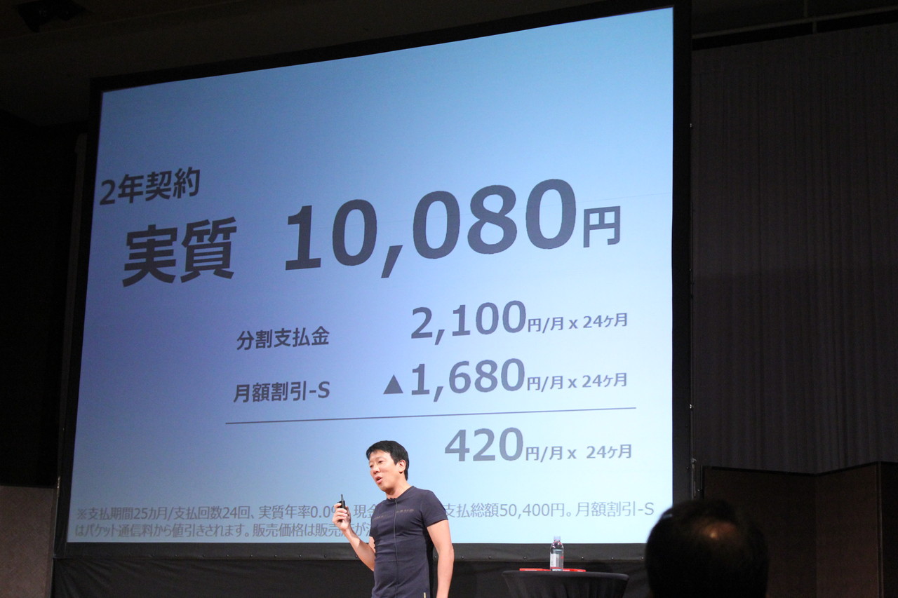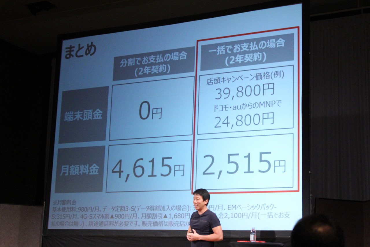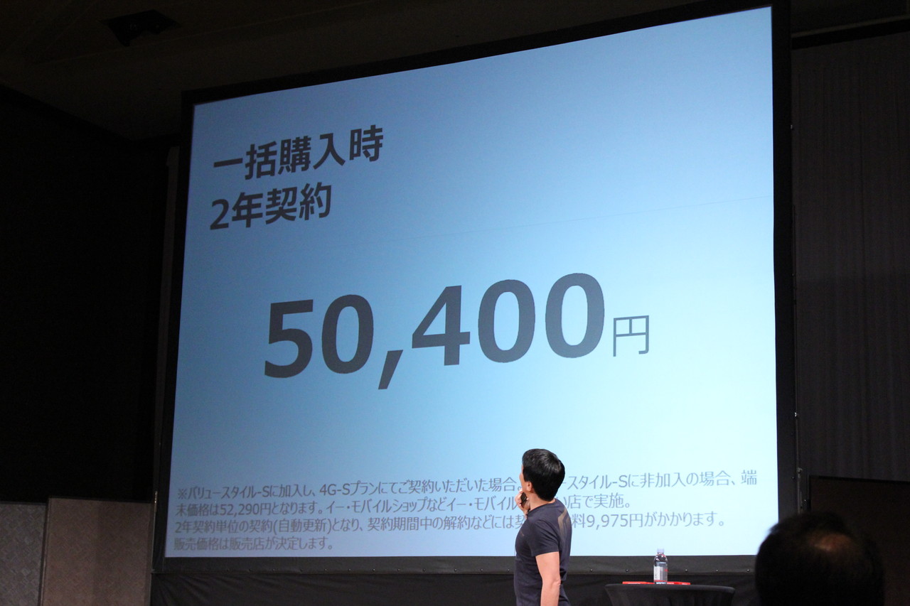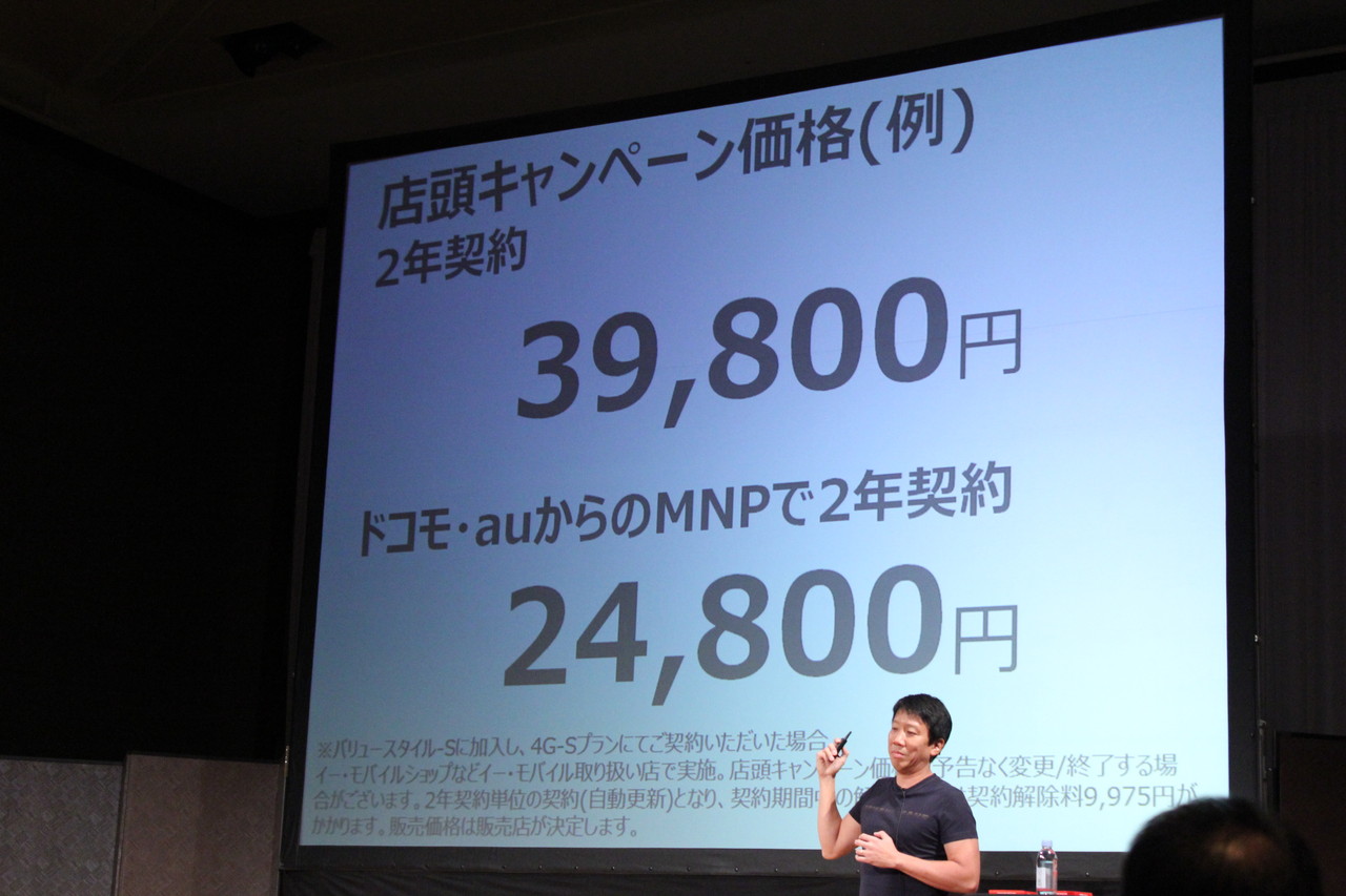 価格が一括払い(バリュースタイル-S)で50,400円ですが、キャンペーン価格で10,600円引きの39,800円となり、Google Playと同じとなっているほか、店舗などにもよりますが、NTTドコモおよびau by KDDIからの携帯番号ポータビリティー(MNP)による乗り換えだと15,000円引きの24,800円になるということです。