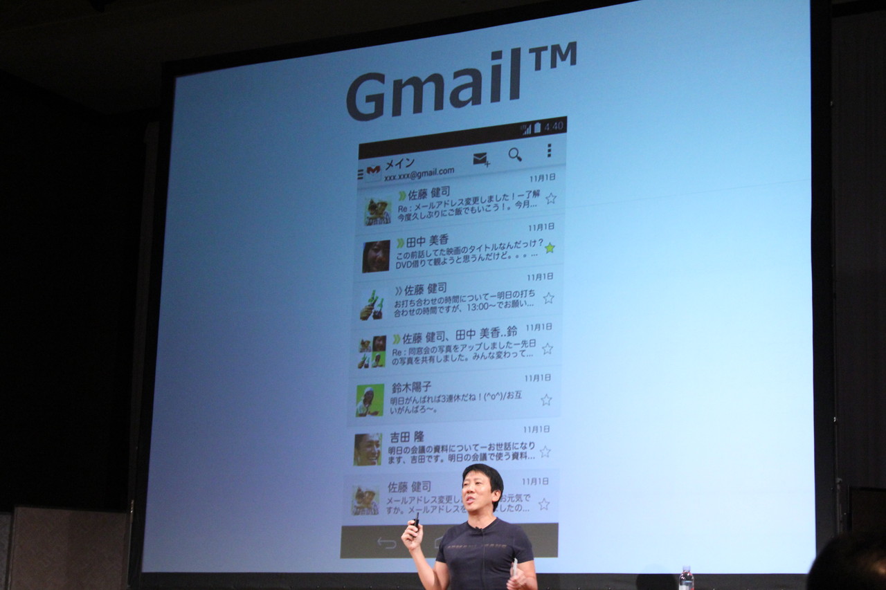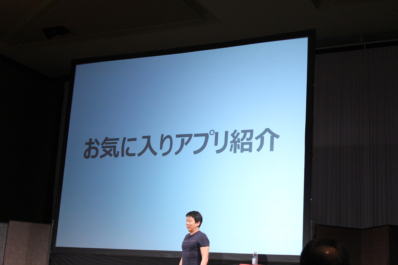続けて、ガン氏からお気に入りアプリが紹介され、Google純正のGoogle EarthやGmail、YouTubeなどが挙げられていました。