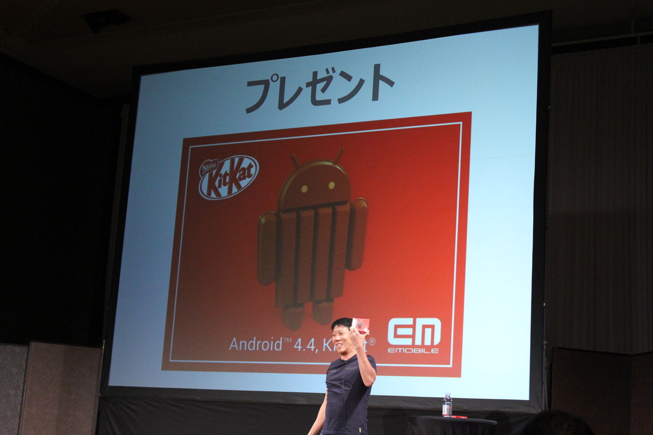 発表会では、来場した報道関係者にAndroidとキットカットのコラボチョコやイー・アクセスのキットカット風チョコがプレゼントされました。