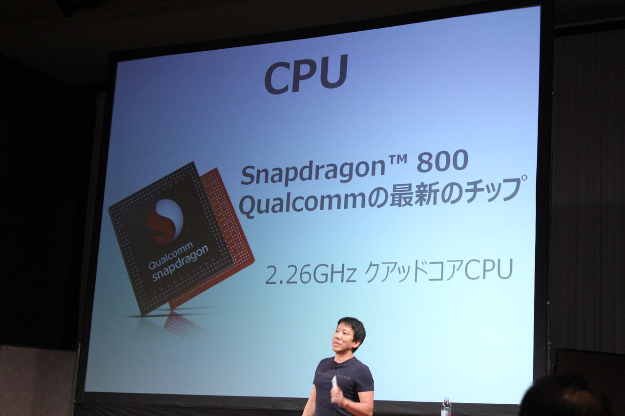 大まかな製品仕様としては、4.95インチフルHD(1080×1920ドット)IPS液晶や2.26GHzクアッドコアCPU(Qualcomm製「Snapdragon 800 MSM8974」)、2GB内蔵メモリー(RAM)、16GB内蔵ストレージ、光学手ぶれ補正対応800万画素CMOSアウトカメラ、130万画素CMOSインカメラ、IEEE802.11a/b/g/n/ac(ドラフト版)無線LAN(Wi-Fi)、Bluetooth 4.0、ワイヤレス充電対応2300mAhバッテリー、GPS、NFC、microUSB(SlimPort対応)、3.5mmイヤホンジャック、ジャイロセンサー、加速度センサー、電子コンパス、近接センサー、環境光センサー、気圧センサー、ホール効果など。