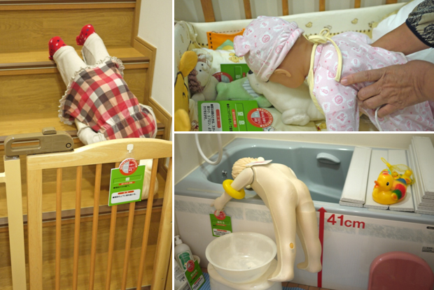 ※京あんしんこども館では次のように、モデルルームと人形を使って、家庭で起こる不慮の事故と、その防止策を体験しながら学べる、日本でも珍しい施設があります。