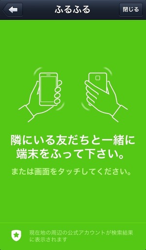 なお、ふるふるは、友だち追加手段の1つとして、位置情報機能を活用し、目の前で同時にスマートフォンを振っている人たち同士を検索するという機能です。