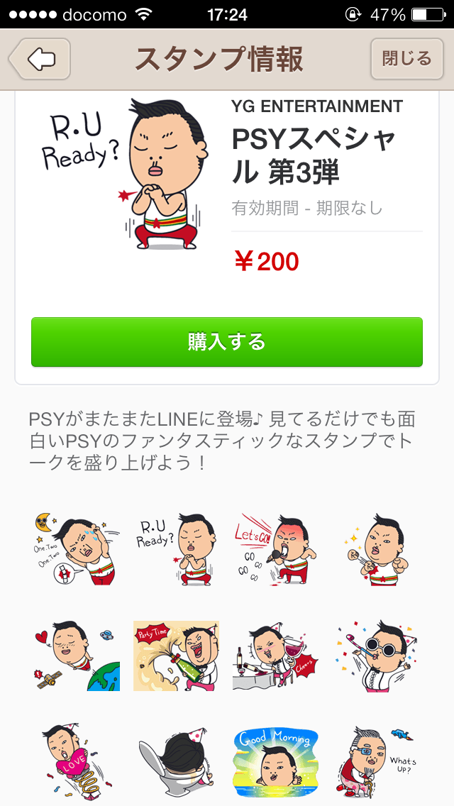 韓国人歌手・PSY(サイ)のスタンプ第3弾の登場です。見ているだけでも面白いPSYのスタンプを使ってトークを盛り上げましょう!