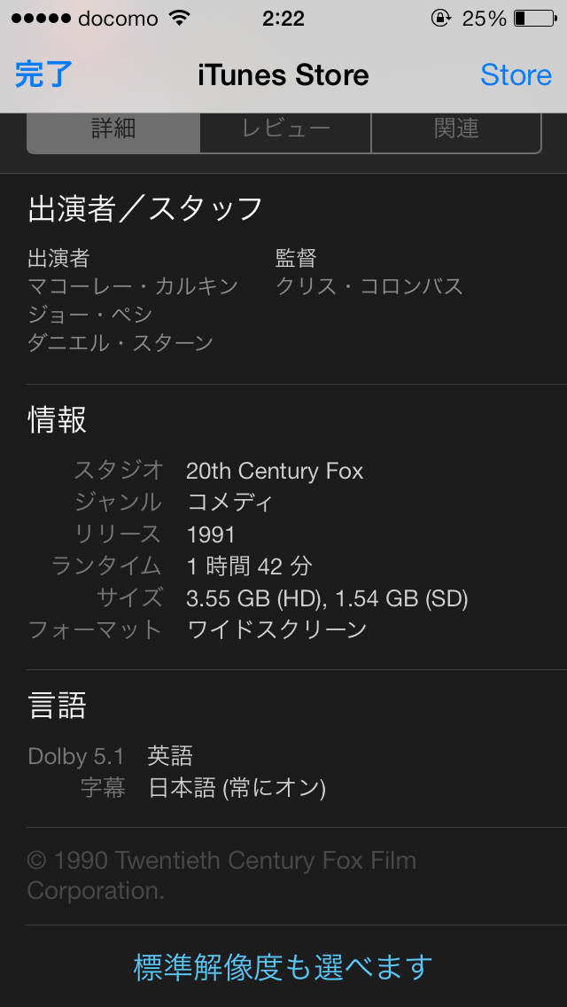 容量は3.55GB(HD)、1.54GB(SD)と大きめなのでWi-Fiでのダウンロードをおすすめします。外出中でWi-Fi環境がない場合でも一旦購入して置いてWi-Fi環境が整ってから改めてダウンロードすることもできるのでとりあえず、ダウンロードしておいたほうがお得ですよ!