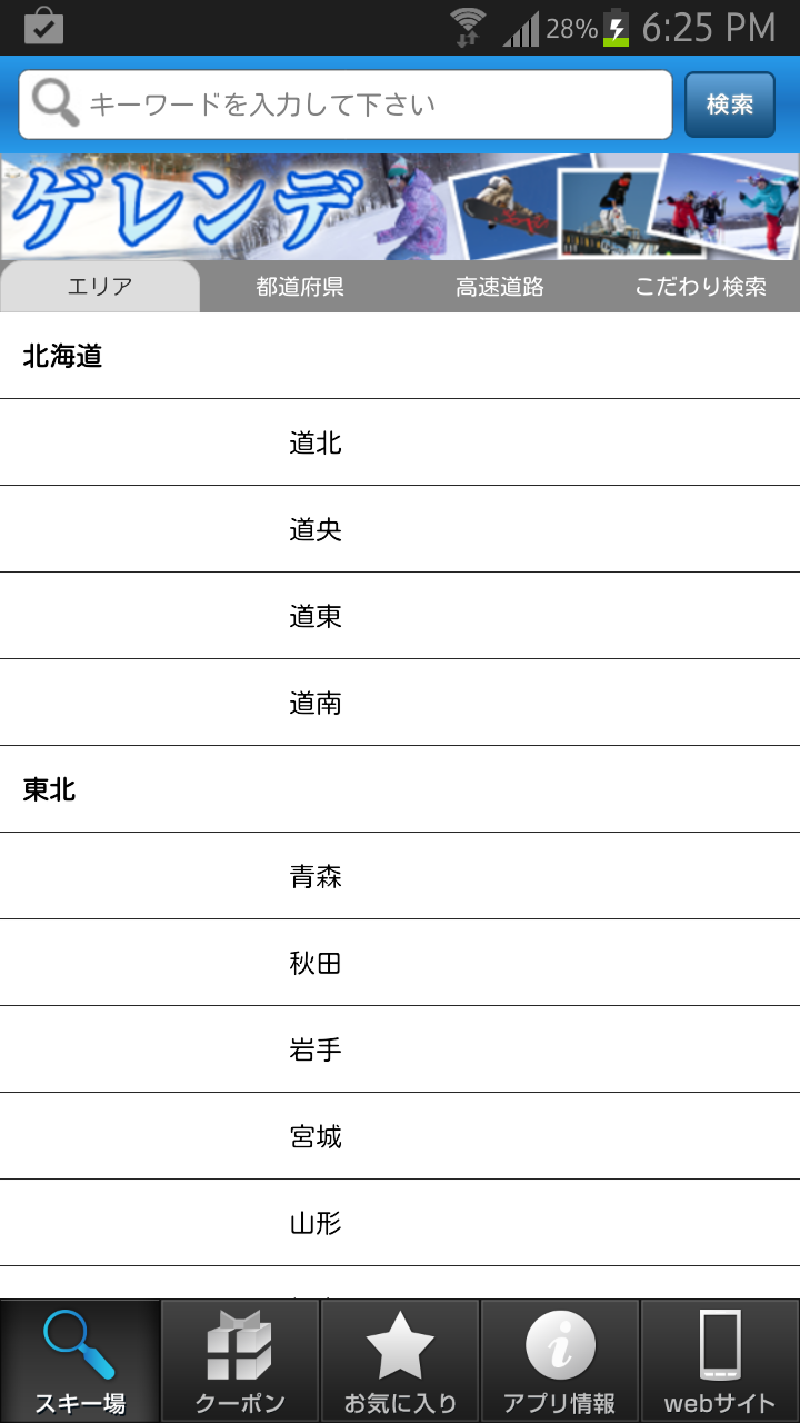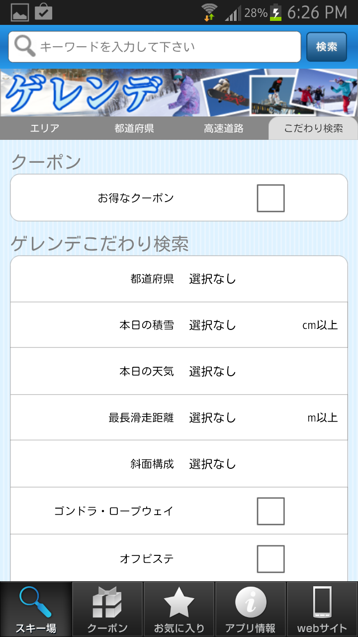 クーポンがあるスキー場の検索もラクラクできます。