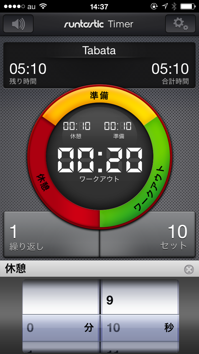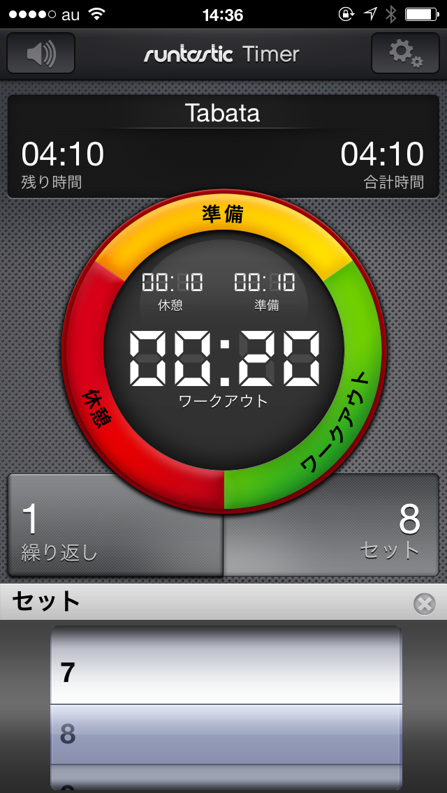 セット:「ワークアウト」→「休憩」(セット)を行う回数