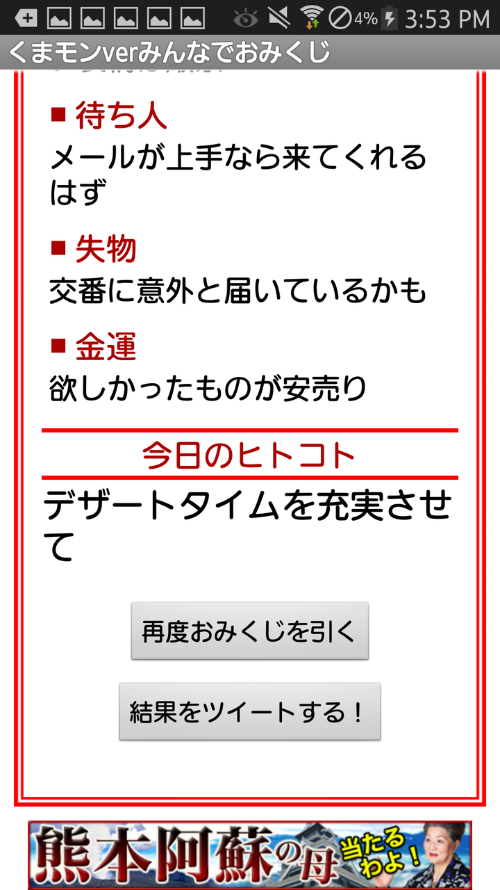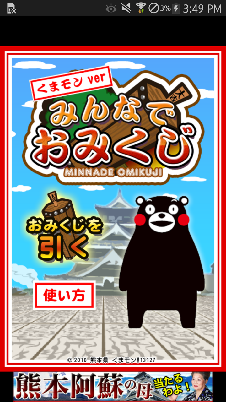 もうおみくじ引いた?大人気くまモンが見守ってくれる「くまモンverみんなでおみくじ」【Androidアプリ】