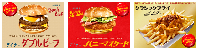 全国のマクドナルドで販売中の「ダイナー ダブルビーフ」「ダイナー ハニーマスタード」のバリューセットもしくはクラシックフライセット