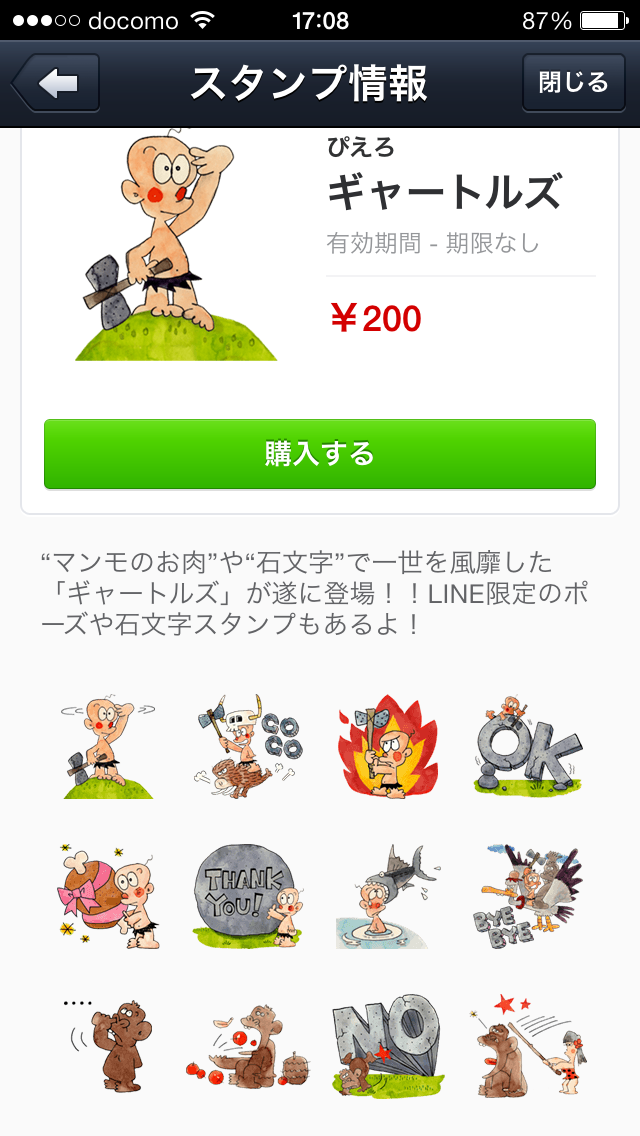 “マンモのお肉”や“石文字”で知られる原始人ギャグ漫画「ギャートルズ」がLINEスタンプになって登場です。LINE限定の石文字スタンプは要チェックですよ!