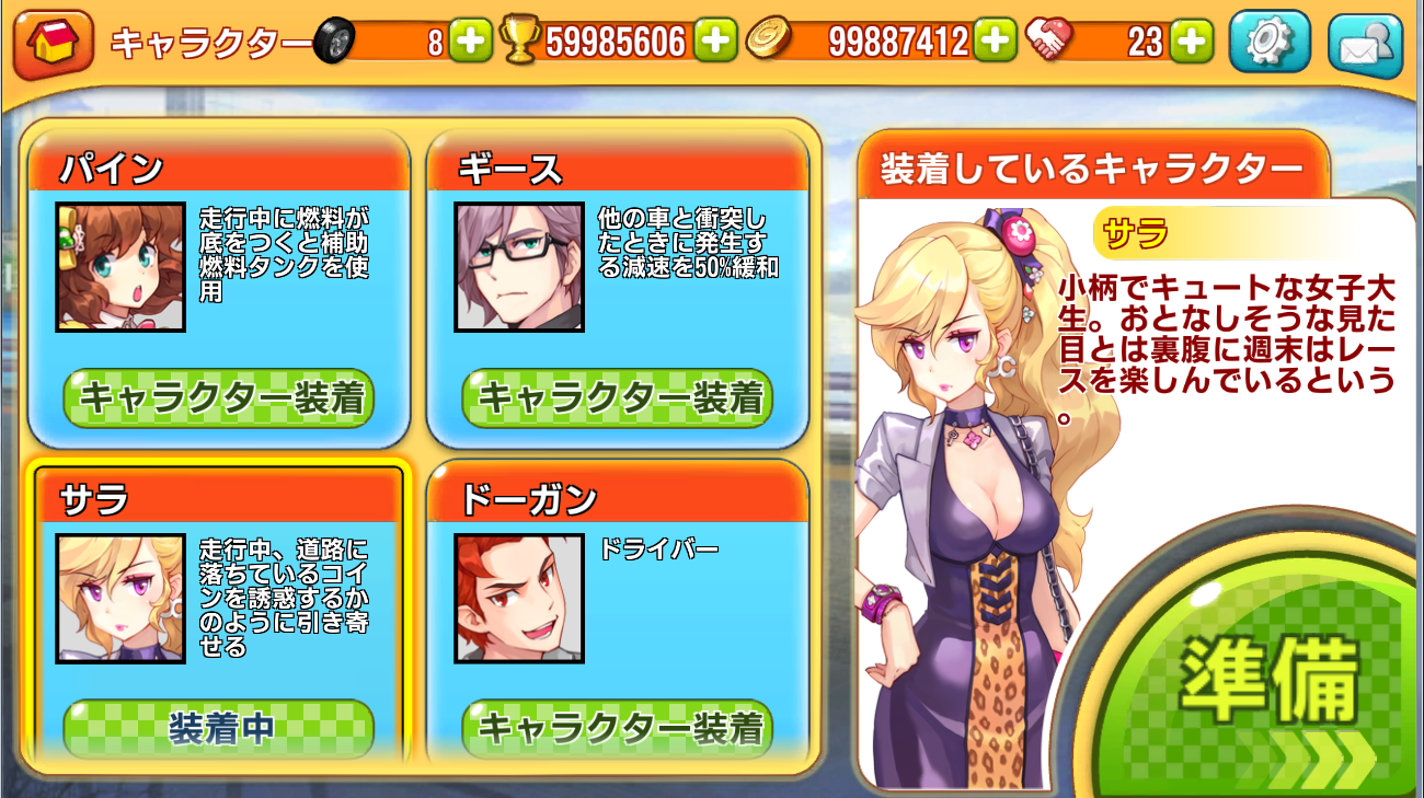 なお、ゲームのスコアによって獲得できるゴールドやトロフィーを使って、個性豊かなキャラクターや50種類以上ある車を入手・強化することができます。キャラクターや車によって、能力が異なるので、自分好みのキャラクターを選び、車をアップデートすることでより一層プレイを楽しめます。