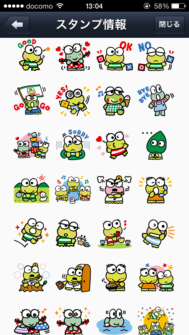 けろけろけろっぴのスタンプ第2弾の登場です。ドーナツいけの仲間たちも加わってさらにパワーアップしちゃいました。いつでも つ“かえる”便利なスタンプですよ。