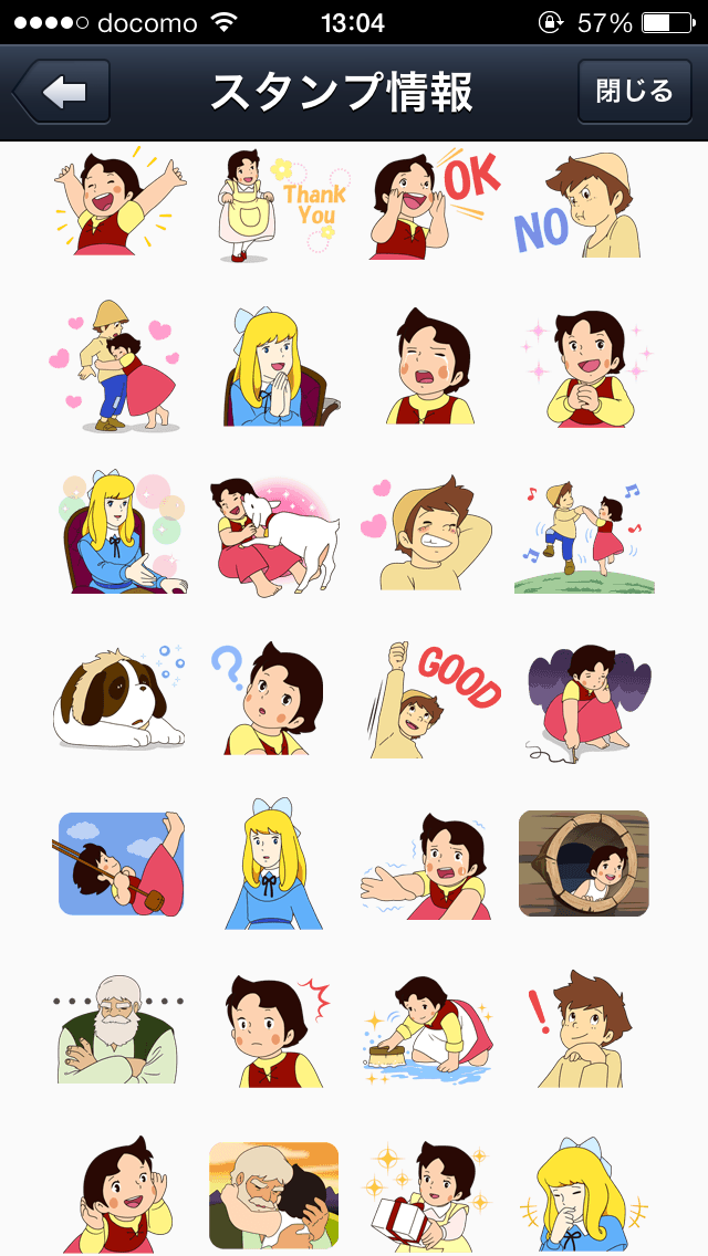 名作アニメーション「アルプスの少女ハイジ」がLINEのスタンプになって登場です。ハイジや山の住人たちの暖かい雰囲気がLINEのトークを和やかにしてくれます。
