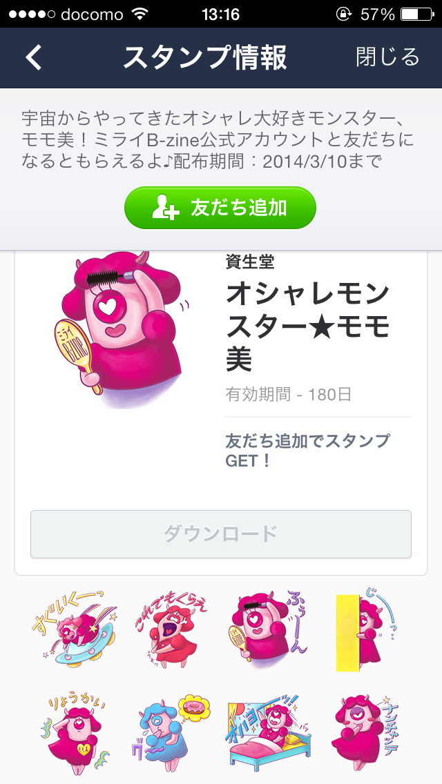 ビューティーマガジン「ミライB-zine」のキャラクター「モモ美」がLINEスタンプになって登場です。宇宙からやってきたオシャレ大好きモンスター、モモ美の不思議な魅力にはまりすぎないようにご注意くださいね!