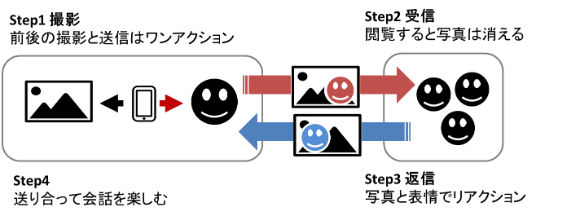 そのため、今撮影した写真しか送れず、確認ややり直しもできす、送られた写真は一度見るか、一定時間が経過すると消去されます。この結果、「残る」ことが前提で作られたサービスでは送りづらい『変顔』や『泣き顔』、『起き抜けの顔』などの写真をやり取りしやすくなっています。