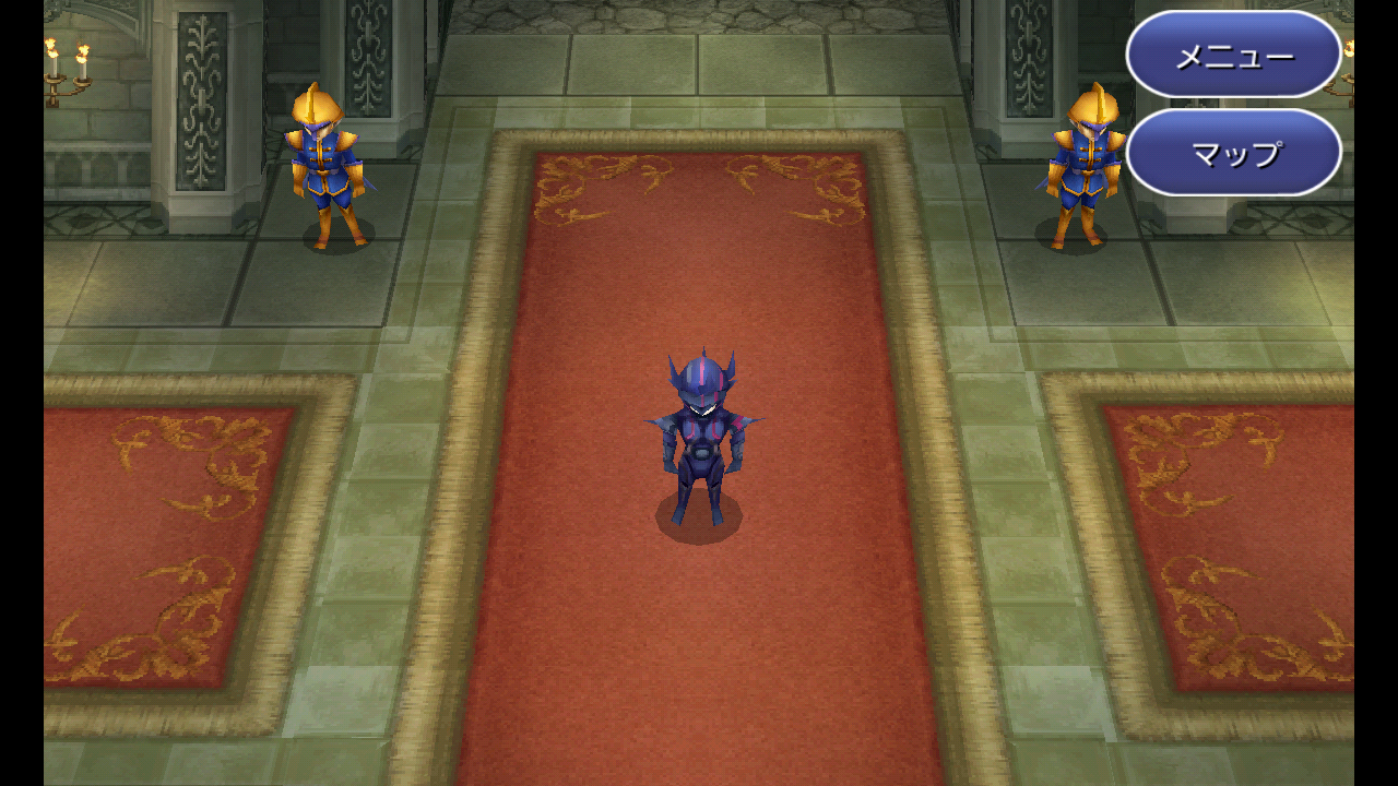 王様になにやら報告して、話が進んでいきます。会話が終わると、自由に動けるようになり、右上に「メニュー」と「マップ」というボタンがあるので、タップするとそれぞれが表示されます。