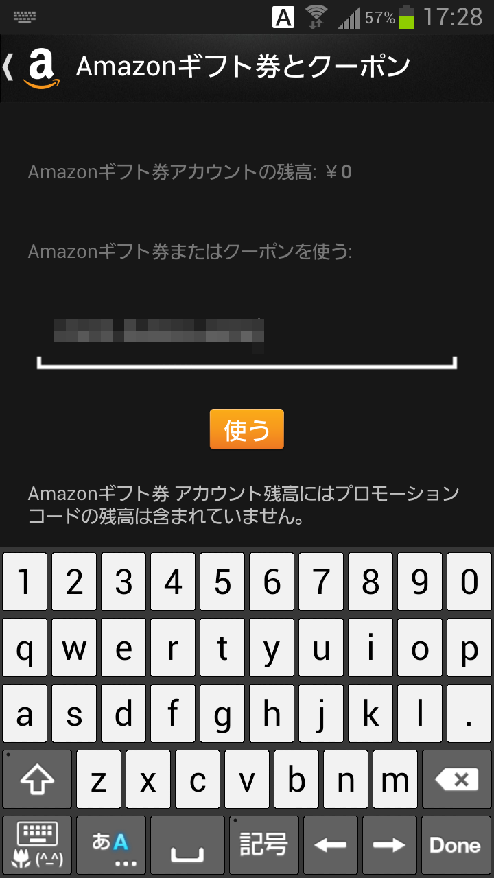 購入またはもらったカード(Eメールなどの場合にはEメール内)に記載された英数字を入力することで、現金の代わりとしてAmazon.co.jpで書籍や生活用品などを購入できます。