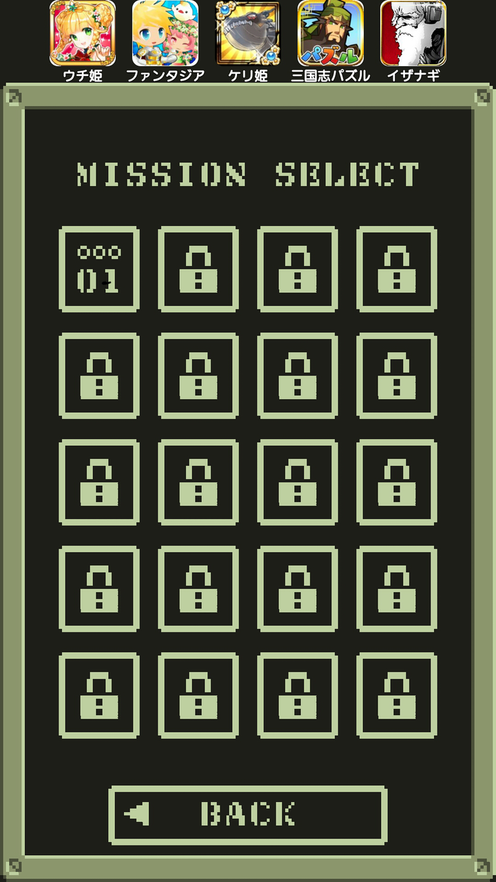[MISSION SELECT]ですが、1面づつ進んでいくゲームなのでまずは[01]をタップします。