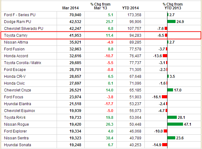 また、本年3月までの累計でも既に9.4万台を販売しており、2位のダッジ・ピックアップを間に挟んで4位のポジションを確保ししましたが2011年8月の米国投入から約3年を迎えたこともあり、今年に入ってからは前年同期比で-6.5%減とやや苦戦気味。
