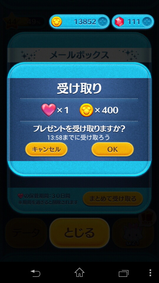 贈られてきたハートは、ゲーム内のメールボックスから受け取ることができる。コインはゲーム内の仮想通貨で、高得点などを狙うための「アイテム」と交換したり、新しいツムを獲得するための「ハピネスBOX」(10000コイン)や「プレミアムBOX」(30000コイン)と交換したりできるもので、ツムツムにおいてこのコインの所持はとても重要だ。
