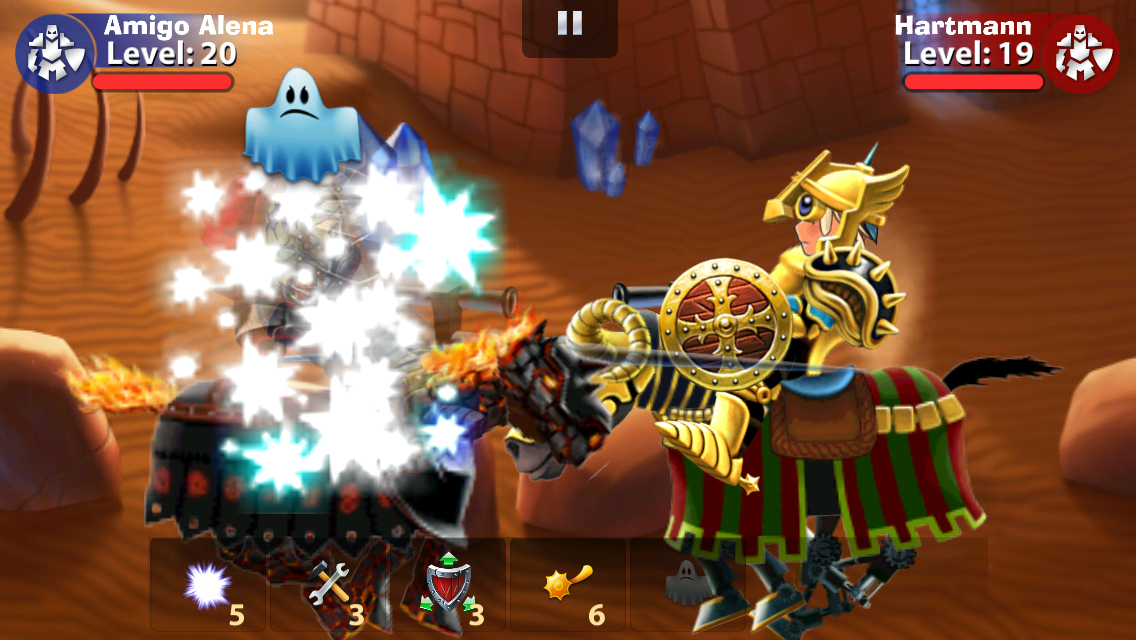 スマートフォンの画面右側で騎士の持つ槍を、画面左側で盾を操作して、相手への攻撃と防御を同時に行います。1人でもユーザー同士でも楽しめる3種類のモードがあり、特にユーザー同士で対戦するモードでは、LINE GAME初となるリアルタイム対戦が楽しめます。