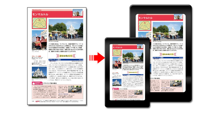 ガイドブックシリーズは世界を網羅する118タイトルで、1〜2年で定期的に改定を行っており、新鮮な旅の楽しさを発信しているとのこと。今回、このガイドブックシリーズのうちでも人気のあるフランスをはじめに電子書籍としては販売開始したということです。