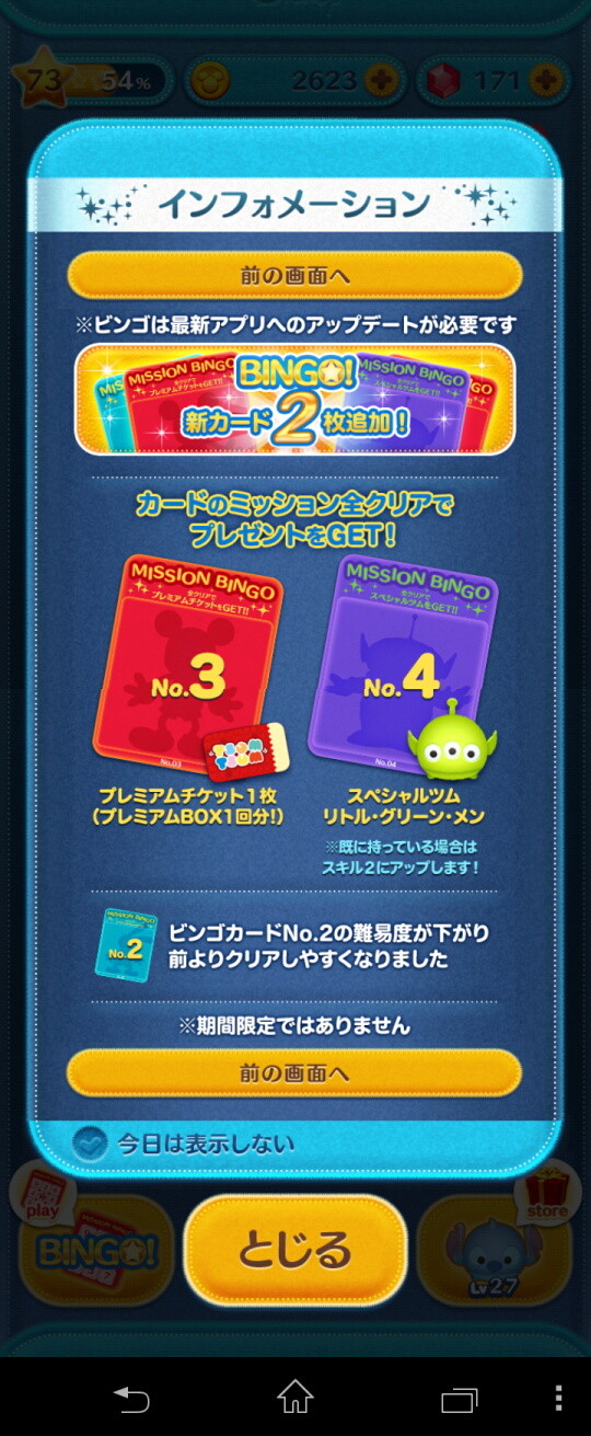 ミッションビンゴの新カード詳細画面