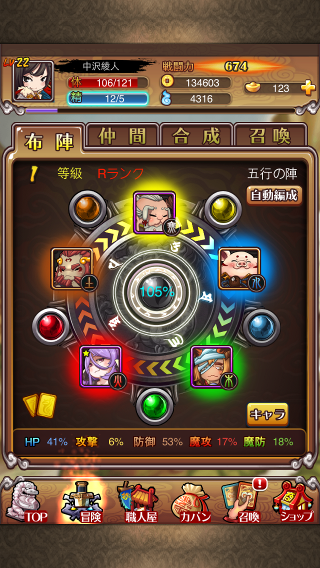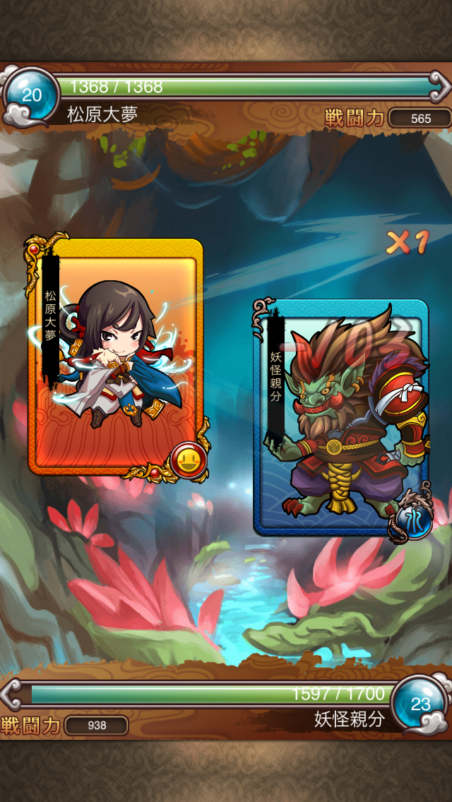 妖怪の属性に合わせ、キャラクターカードを「水」および「金」、「土」、「火」、「木」の5つの属性に戦略的に配置することで自分だけのチームを編成し、次々と現れる妖怪とのバトルに挑みます。
