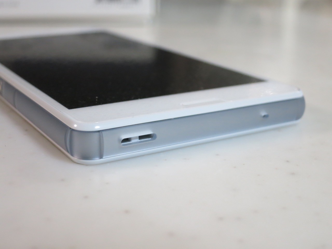 左側面の上側のカバーを開けるとmicroUSB端子とmicroSDカードスロットがあり(写真=左)、下側のカバーを開けるとnanoSIMカードスロットが現れます。防水および防塵に対応しているためカバーにはパッキンが付いています