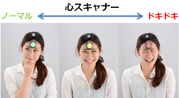 例えば合コンで心スキャナーを額につけ、互いに質問して反応を見て遊べる。