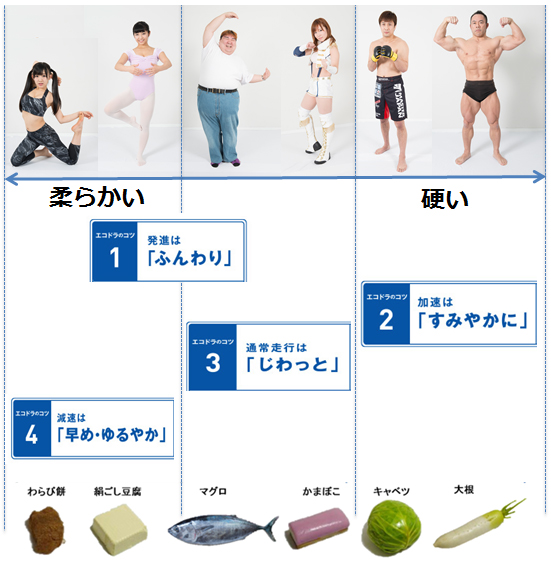 このようにアクセルやブレーキの踏み方と人物や食材の柔らかを対応させてみた、