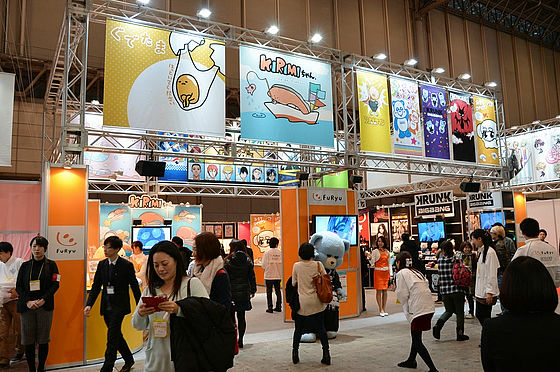 2015年2月13日〜14日にかけて最新ゲームが集結する「ジャパンアミューズメントエキスポ2015」では、音ゲーやアーケードゲームの試遊台だけでなく、クレーンゲームなどの景品となるプライズ商品も数多く出展されています。そんなプライズ商品の展示ブースで、鮭の切り身を擬人化した「KIRIMIちゃん.」や、やる気のない生玉子を擬人化した「ぐでたま」のぬいぐるみやキーホルダーを発見しました。さらに同ブースでは「弱虫ペダル」の御堂筋翔のコスプレイヤーや、「デュラララ!!2」の添い寝体験コーナーまで用意されています。