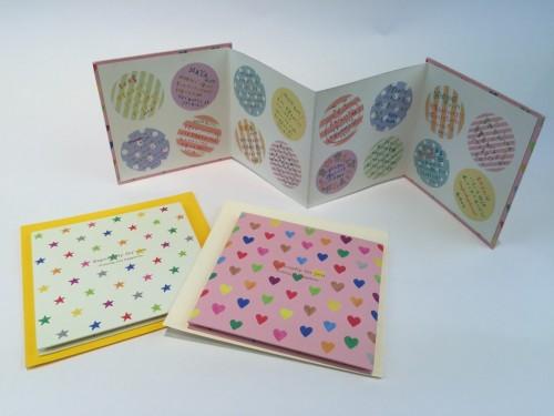 広報コメント:「本のような見た目に、かわいい柄のメッセージシールつき。渡す方ももらう方も嬉しい、おりたためるミニサイズ。」