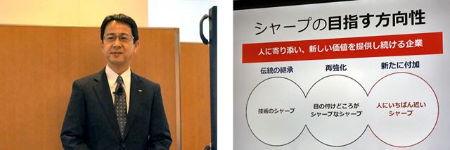同社の川口氏がこれからのシャープのビジョンを発表。「これまでのシャープの技術と鋭い感性を活かし、人に寄り添う製品を目指す」と語った