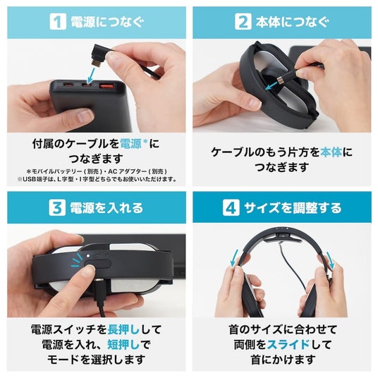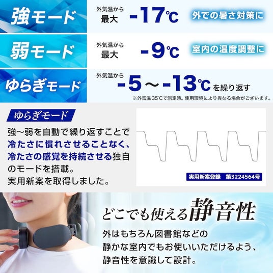 本製品は、首に掛けて使うウェアラブル型のクーラーです。