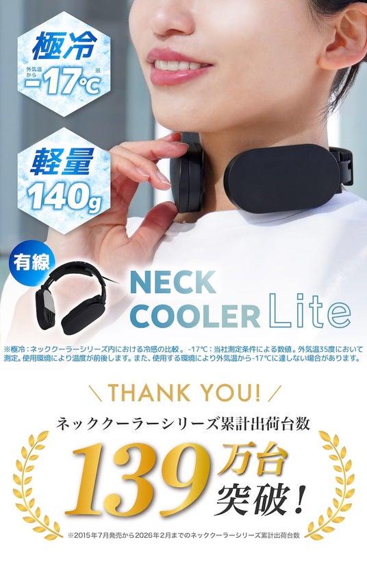 シリーズ史上、最冷却・最軽量を両立。あえての「有線」がこの夏を変える。電気の力で首を冷やす『ネッククーラーLite』を発売