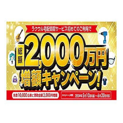 ソフマップは5月10日〜6月30日の期間、同社の運営する買取総合サービス「ラクウル」において、宅配買取をはじめて利用する人を対象に、「総額2,000万円 増額キャンペーン!」を実施する。●買取査定金額の合計から、さらに2000円分を増額「総額2,000万円 増額キャンペーン!」では、「ラクウル」で宅配買取をはじめて利用する人のうち先着1万名に、買取査定金額の合計に対してさらに2000円を増額する。同キャンペーンは、「