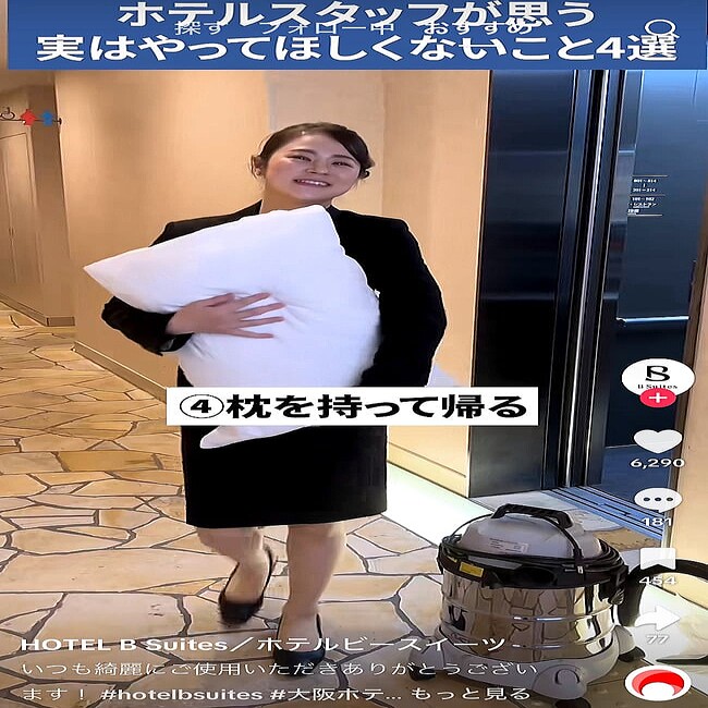 ニューストップ > 国内ニュース > 政治ニュース > ホテルスタッフが教える宿泊時のNG行為にSNS衝撃「そんな人いるんで… ホテル マナー 時事ニュース オトナンサー ホテルスタッフが教える宿泊時のNG行為にSNS衝撃「そんな人いるんですね」 2025年10月4日 19時10分 リンクをコピーする by ライブドアニュース編集部 ざっくり言うと ホテルスタッフが宿泊時に「やってほしくないこと4選」をSNSで紹介した 部屋着&スリッパで共有スペースを利用する、ルームキーを持ち帰るなど 投稿には「そんな人いるんですね!」「恐ろしい」といった声が寄せられた 記事を読む おすすめ記事 「恋愛感情はなかった」 数回にわたり交番勤務中に性行為 神奈川県警、署員2人懲戒処分 投書で発覚 2025年11月7日 21時50分 テレ朝「ナンバーワン戦隊ゴジュウジャー」 ユニコーン役の今森茉耶の降板発表「20歳未満での飲酒行為」 2025年11月8日 13時57分 26年前の名古屋主婦殺害、安福久美子容疑者は被害女性の夫不在の日を把握か 5カ月前のOB会で「週末も出勤」と会話…事件は土曜に発生 2025年11月6日 12時6分 「家族ごと殺すぞ」教諭に暴行し脅迫か 15歳男子中学生が逮捕 授業を抜け出し遊んでいたところ注意され逆上=静岡県警 2025年11月7日 21時14分 「イチャモンつけたいだけ」山本太郎氏 参院で「秋の叙勲」めぐり高市首相を追及も…あっさり“論破”されSNS呆れ声 2025年11月7日 19時35分
