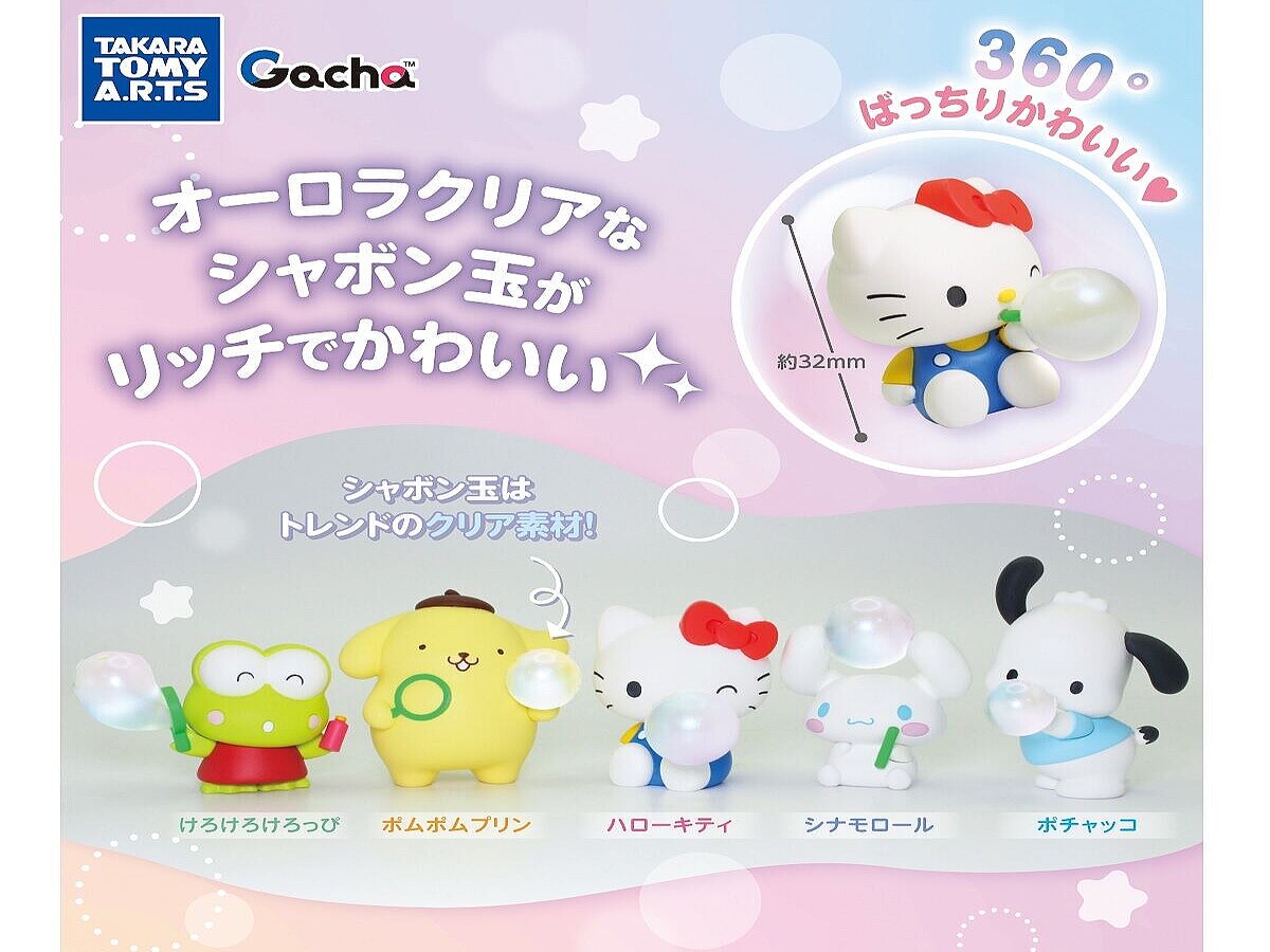 2026年1月、タカラトミーアーツが手掛けるカプセルトイ「ガチャ」に、シャボン玉で遊ぶ「サンリオキャラクターズ」のフィギュアが登場。「かわいい!」とSNSで話題となっています。《📢ガチャ®企画中!!》 . オーロラクリアのしゃぼん玉がエモーショナル!! ₊🎈⋆°︶︶︶︶︶v︶︶︶︶︶ . 🫧「サンリオキャラクターズ きらっと
