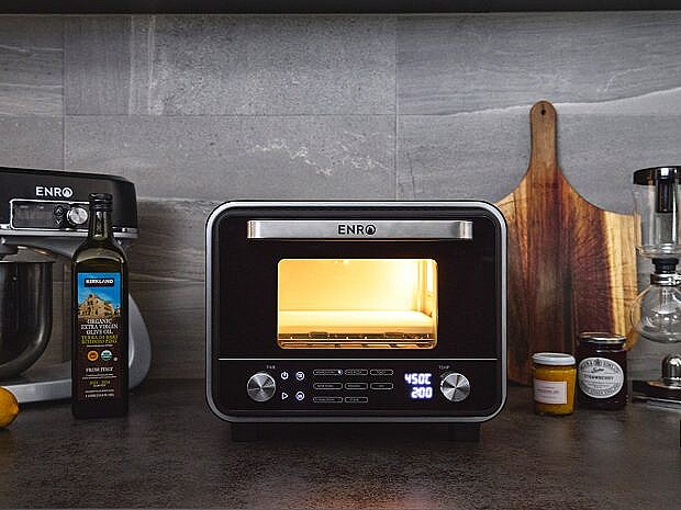 ENRO「電気式窯焼名人mini」4万9980円 [食楽web] ポータブルピザ窯専門ブランド・ENROの「電気式窯焼名人mini」は、トースターサイズのコンパクトなボディでありながら最大火力450℃の超高温を実現した家庭用の“ピザ窯”。 もちろんピザ以外にもパンや肉などを美味しく焼くことができる、こだわり派の料理好きにはたまらない調理機器です。 外寸はトースターサイズながら、庫内の内寸は